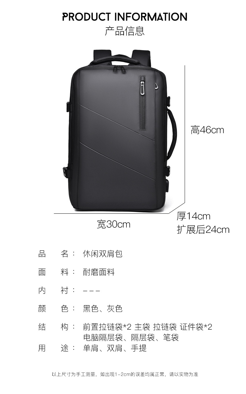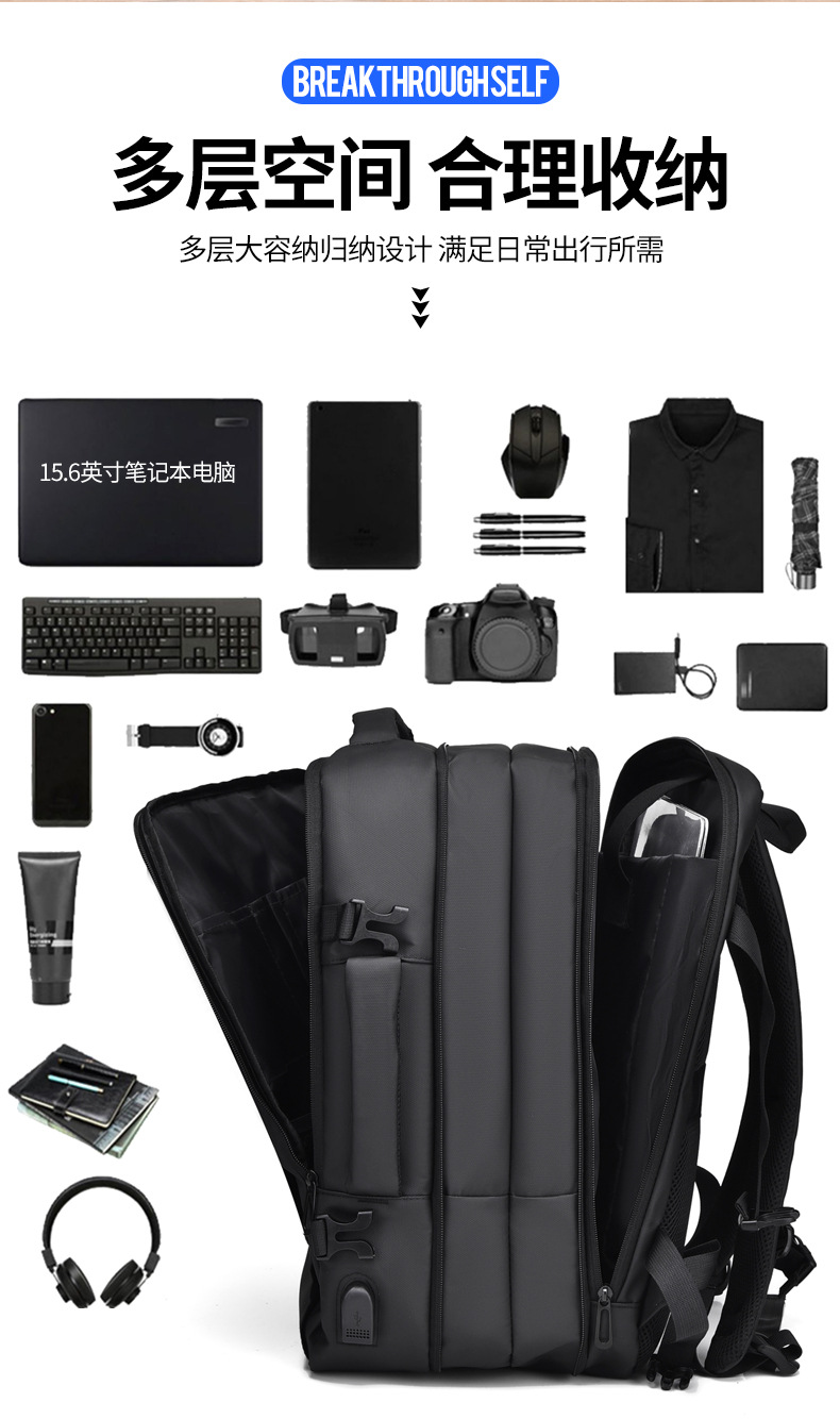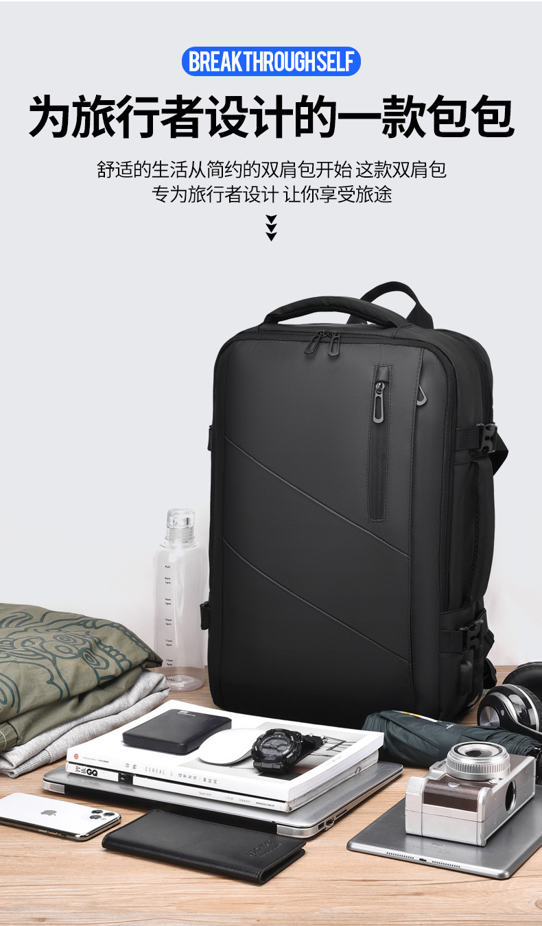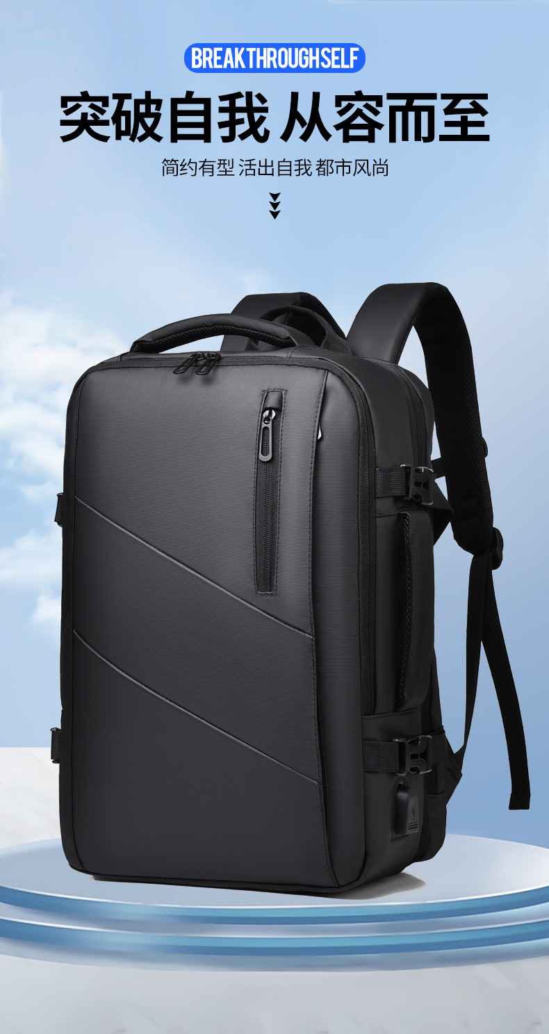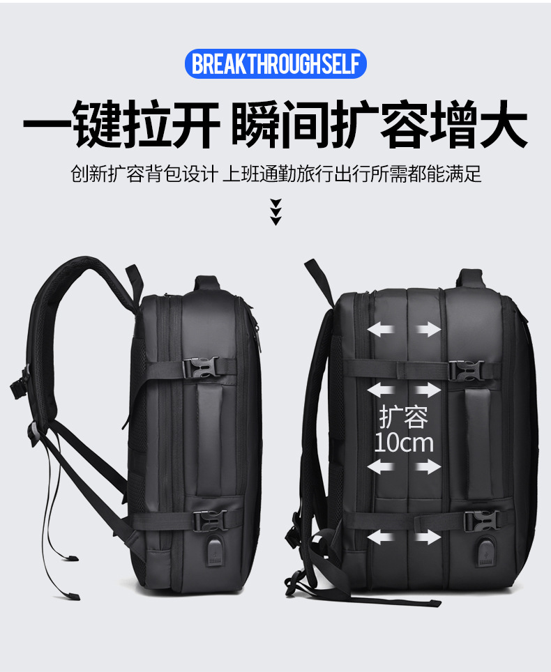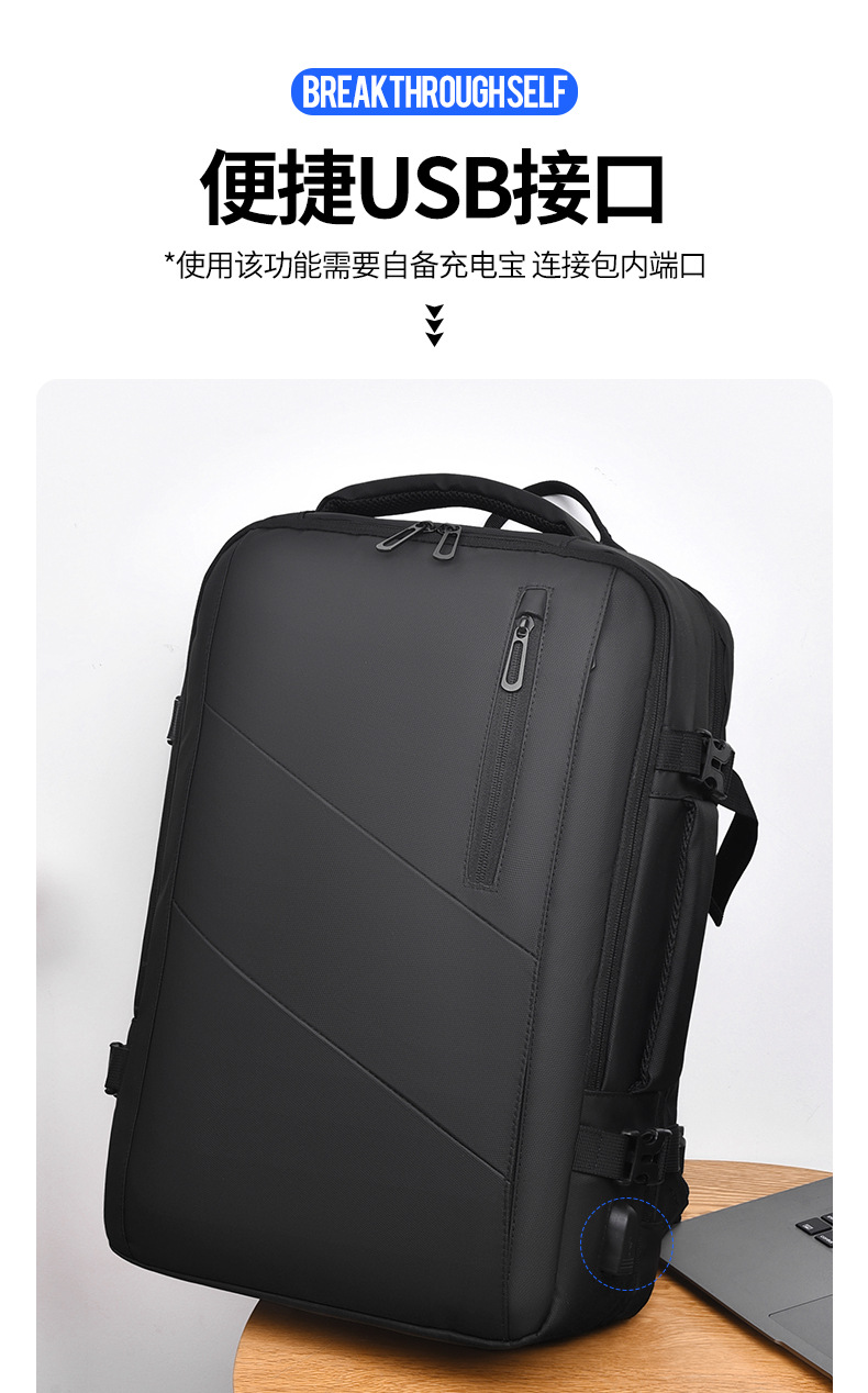 新款简约超大容量旅行背包可扩容商务出行USB充电双肩背包电脑包