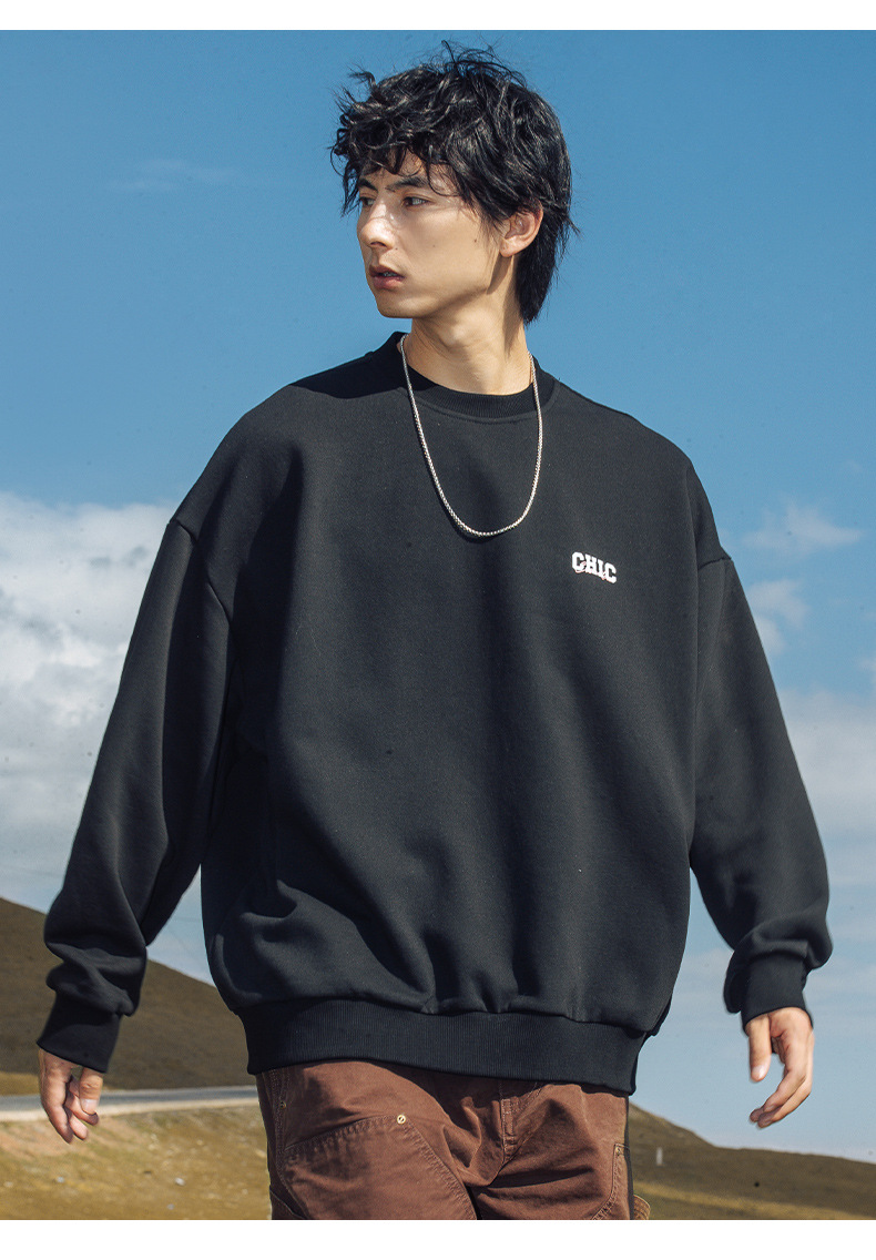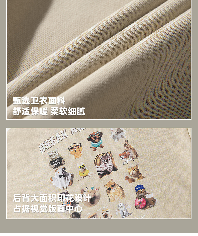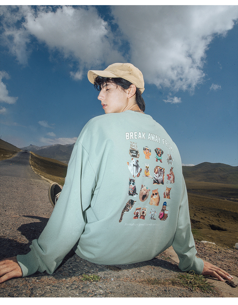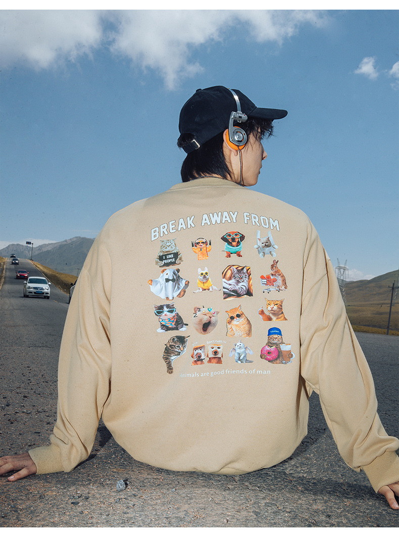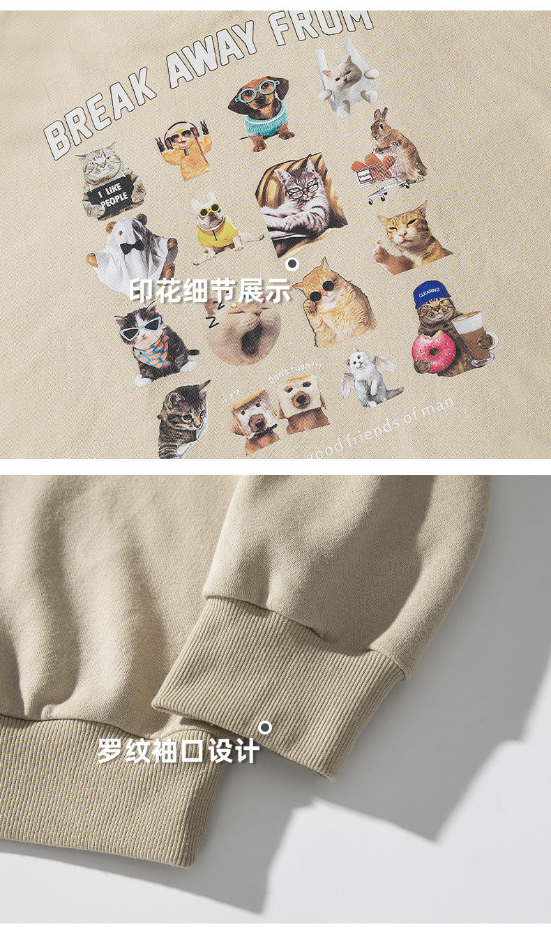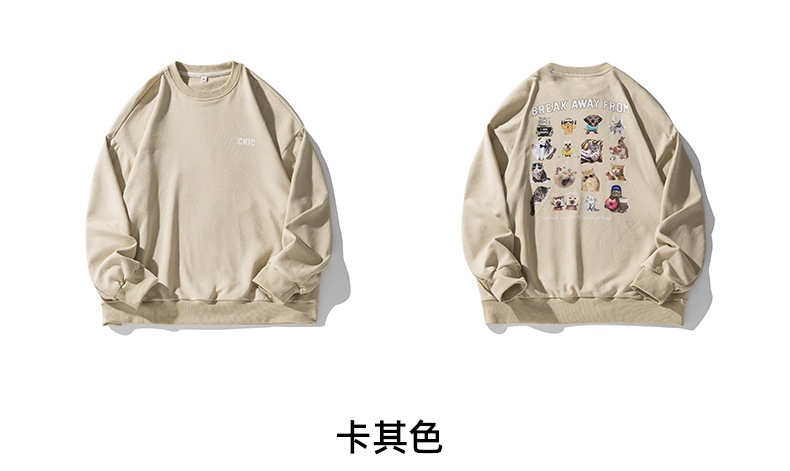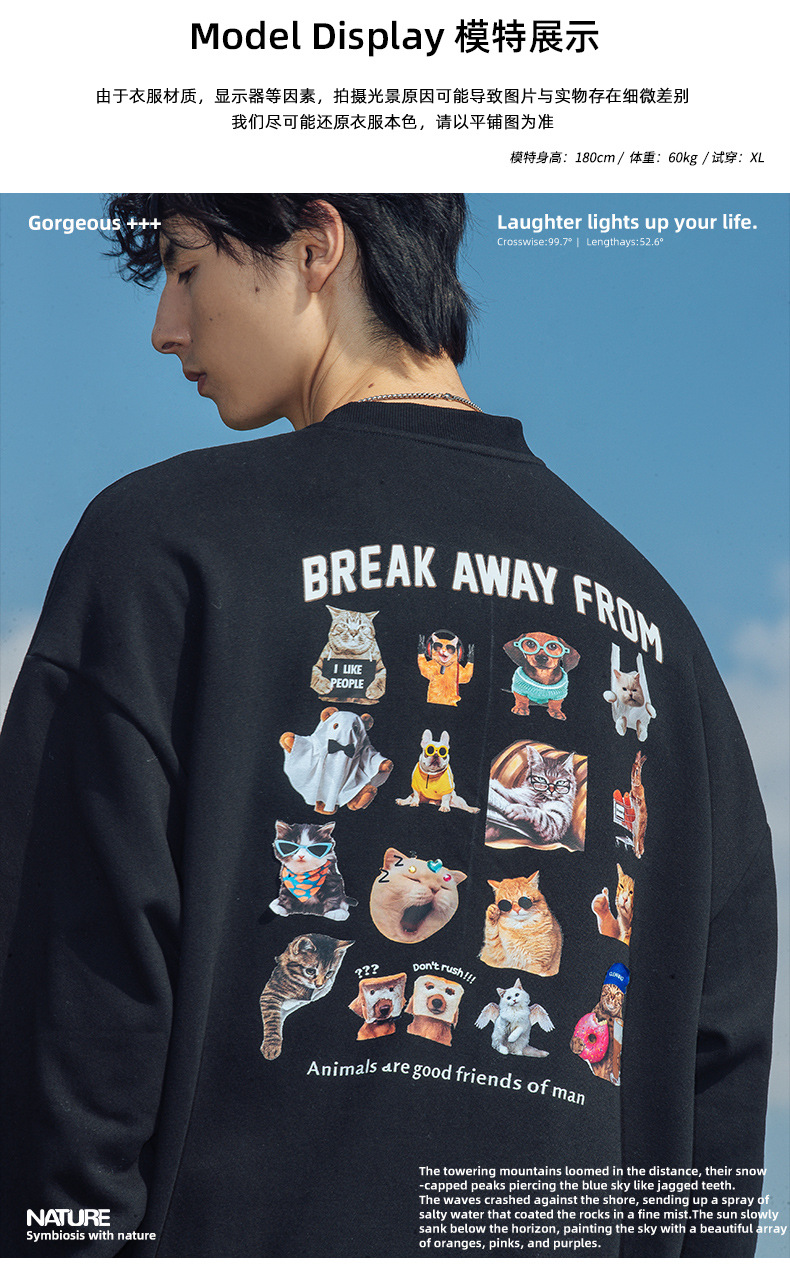 韩路男装 趣味卡通印花美式卫衣男新款重磅宽松情侣圆领外套