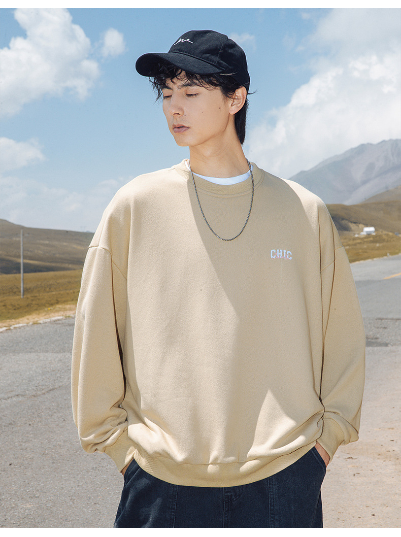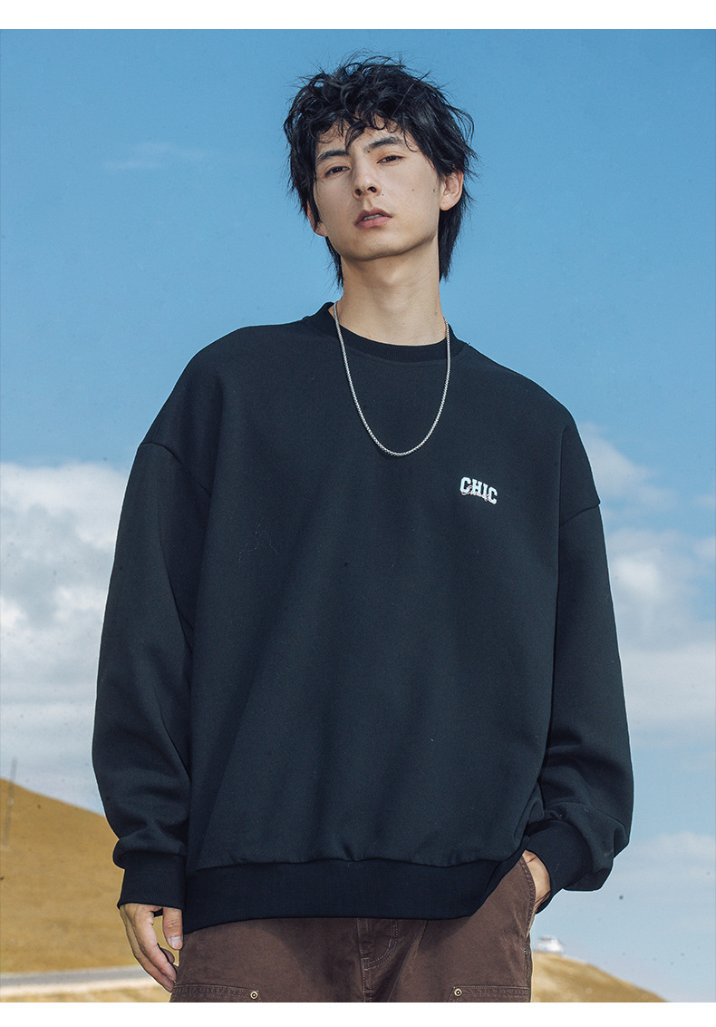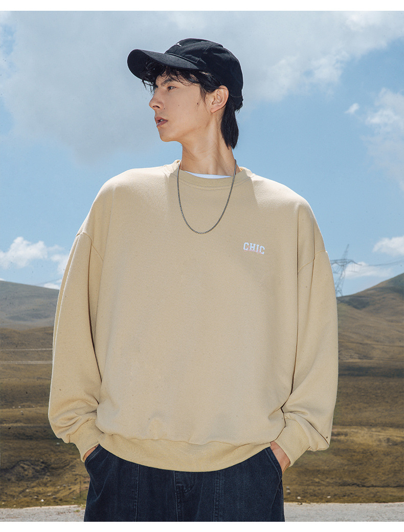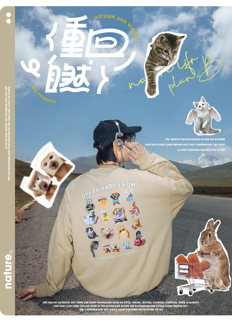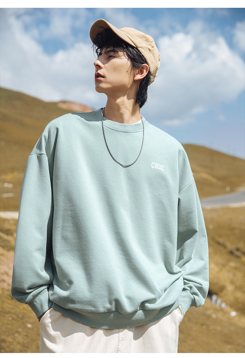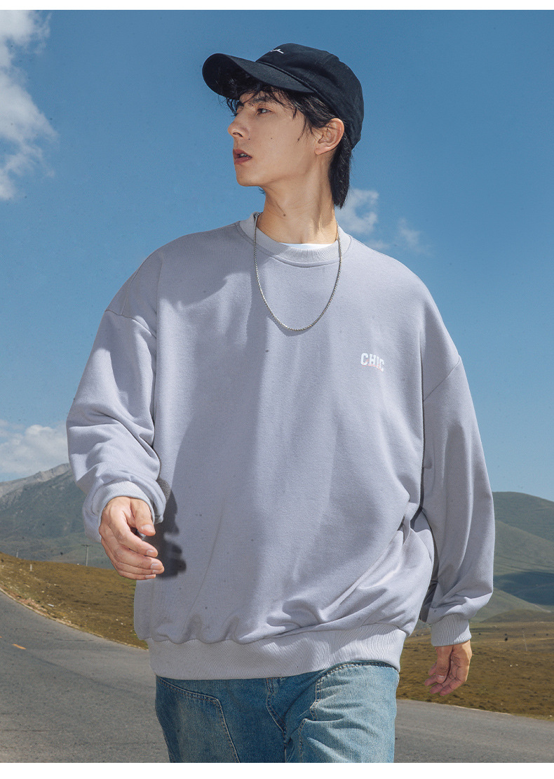 韩路男装 趣味卡通印花美式卫衣男新款重磅宽松情侣圆领外套