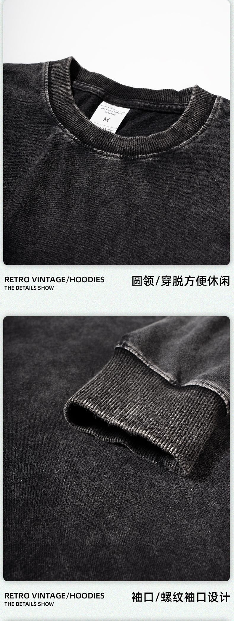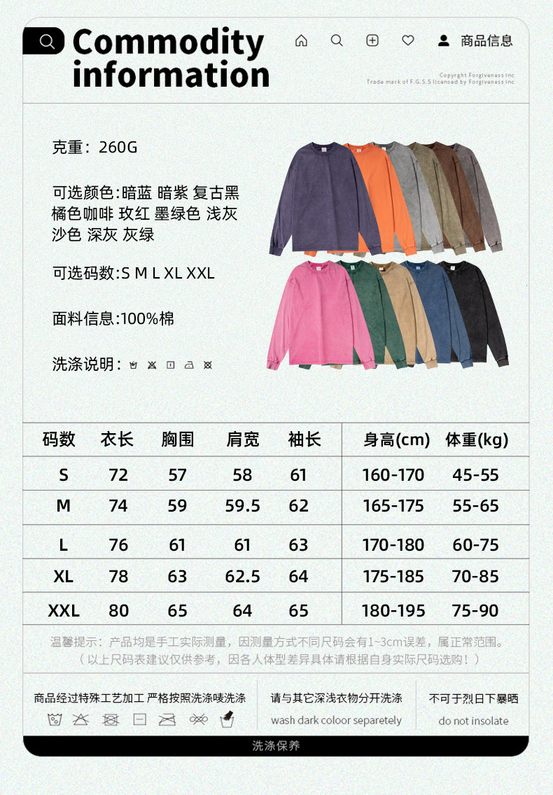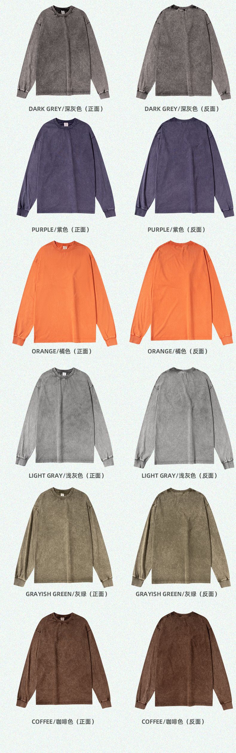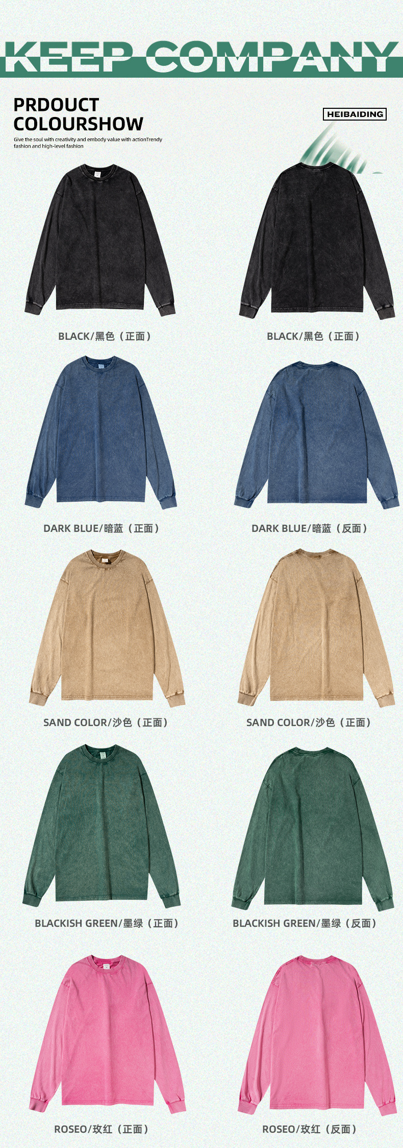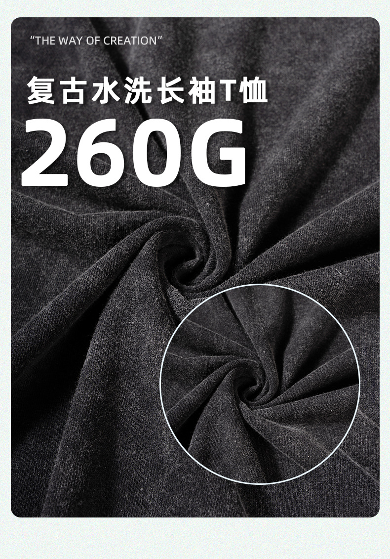 BK男装|260g做旧复古重磅长袖t恤男水洗棉Oversize落肩T恤打底衫