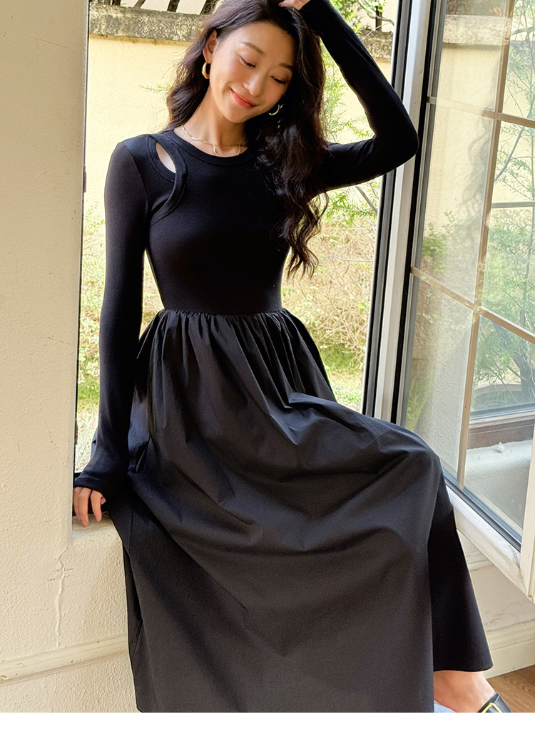 女装新款显瘦打底连衣裙中长款韩国女装套头小黑裙修身针织裙