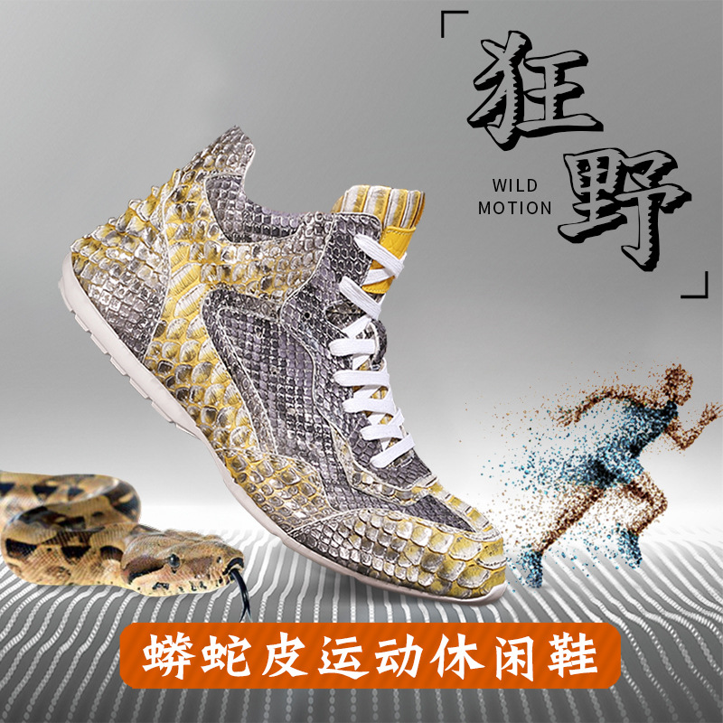 意大利进口蟒蛇皮真皮男鞋运动休闲鞋时尚潮流皮鞋高档鞋子